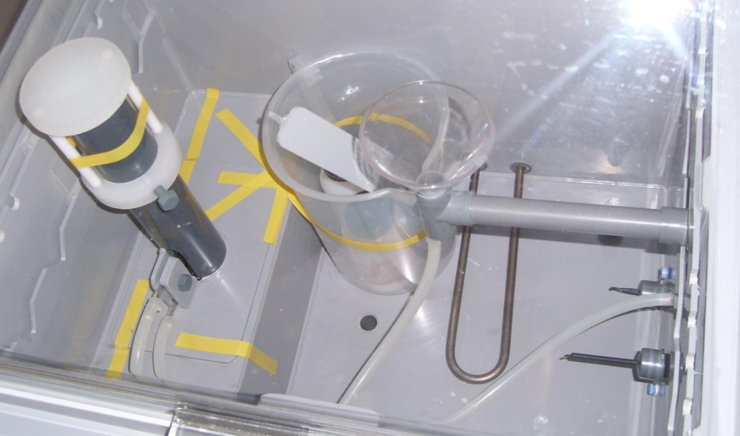 試驗方法:在封閉的鹽霧箱內,噴射成分近似海水的溶液噴霧,使其充滿箱內,并對溫度、PH值、沉降率、空氣壓力、放置角度、飽和塔溫度等條件進行控制,從而快速測試樣品的耐腐蝕性能。常用的鹽霧試驗包括三種,中性鹽霧測試NSS、酸性鹽霧測試AASS和銅離子加速的酸性鹽霧測試CASS。