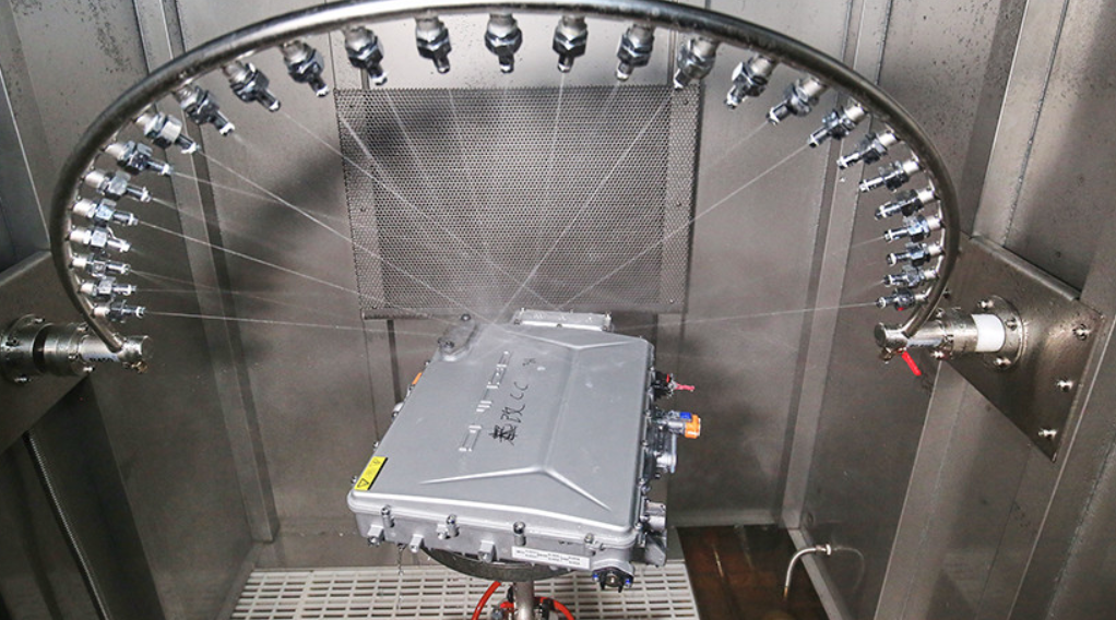 模擬戶外或使用環境惡劣的場景,對電子產品及設備進行測試,用IPXX表示。第一位特征數字表示防止接近危險部件和防止固體異物進入的防護等級,第二位特征數字表示防止水進入的防護等級。常用來測試樣品外殼、密封件在試驗后,能否保證良好的工作性能。